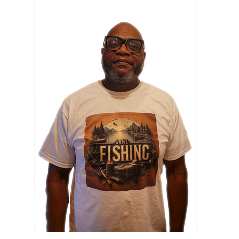 White t-shirt custom design Gone Fishing L, XL, 2XL